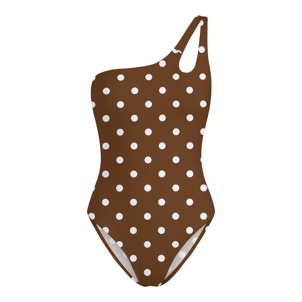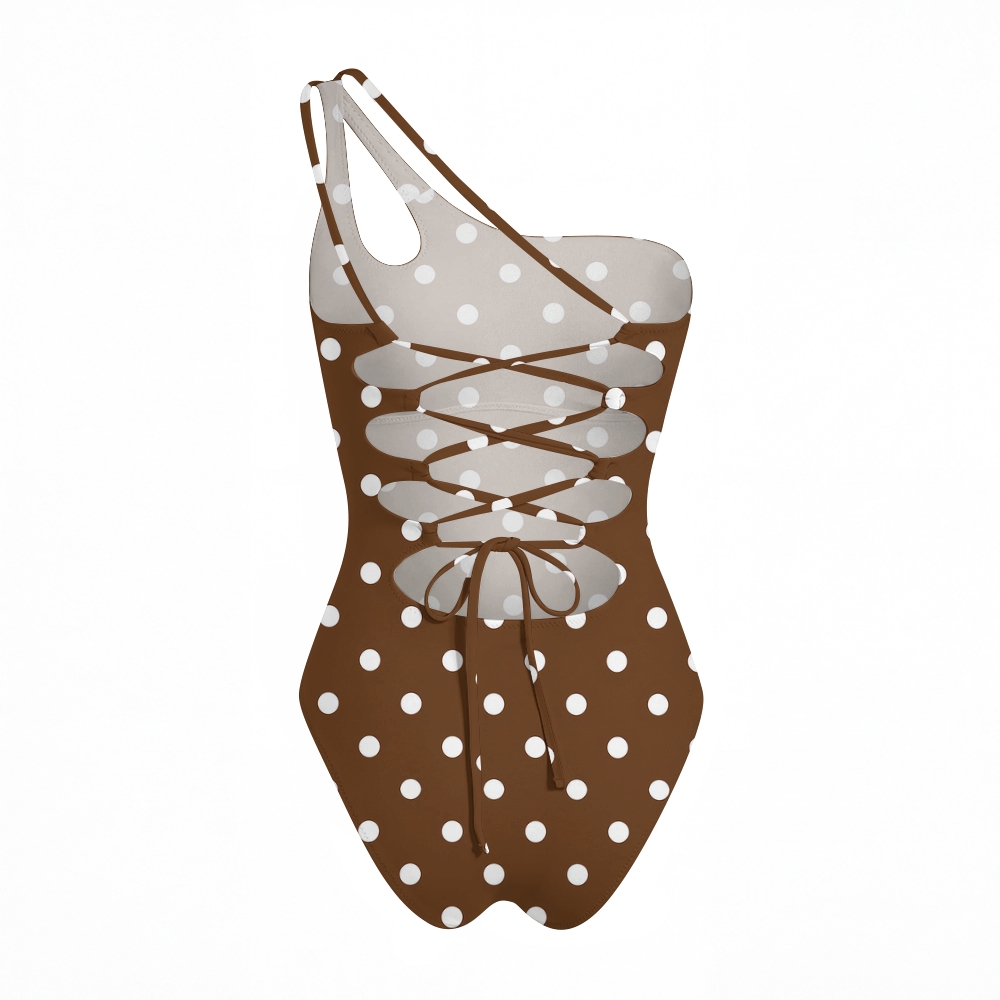 Vintage Polka Dot One Shoulder Backless Lace-up One-Piece Swimsuit