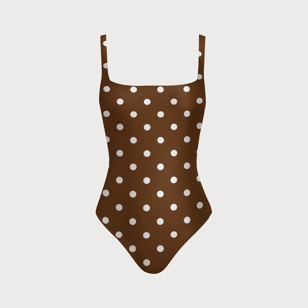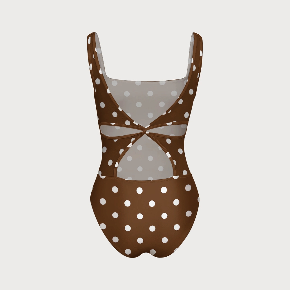 Vintage Polka Dot Square Neck Backless Twist Cutout One-Piece Swimsuit