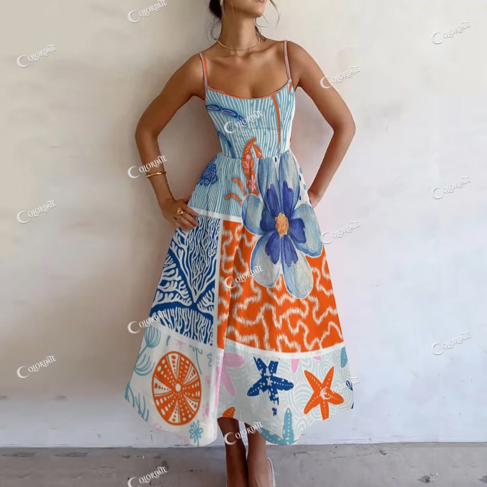 Women's Coastal Patchwork Printed Slip Dress