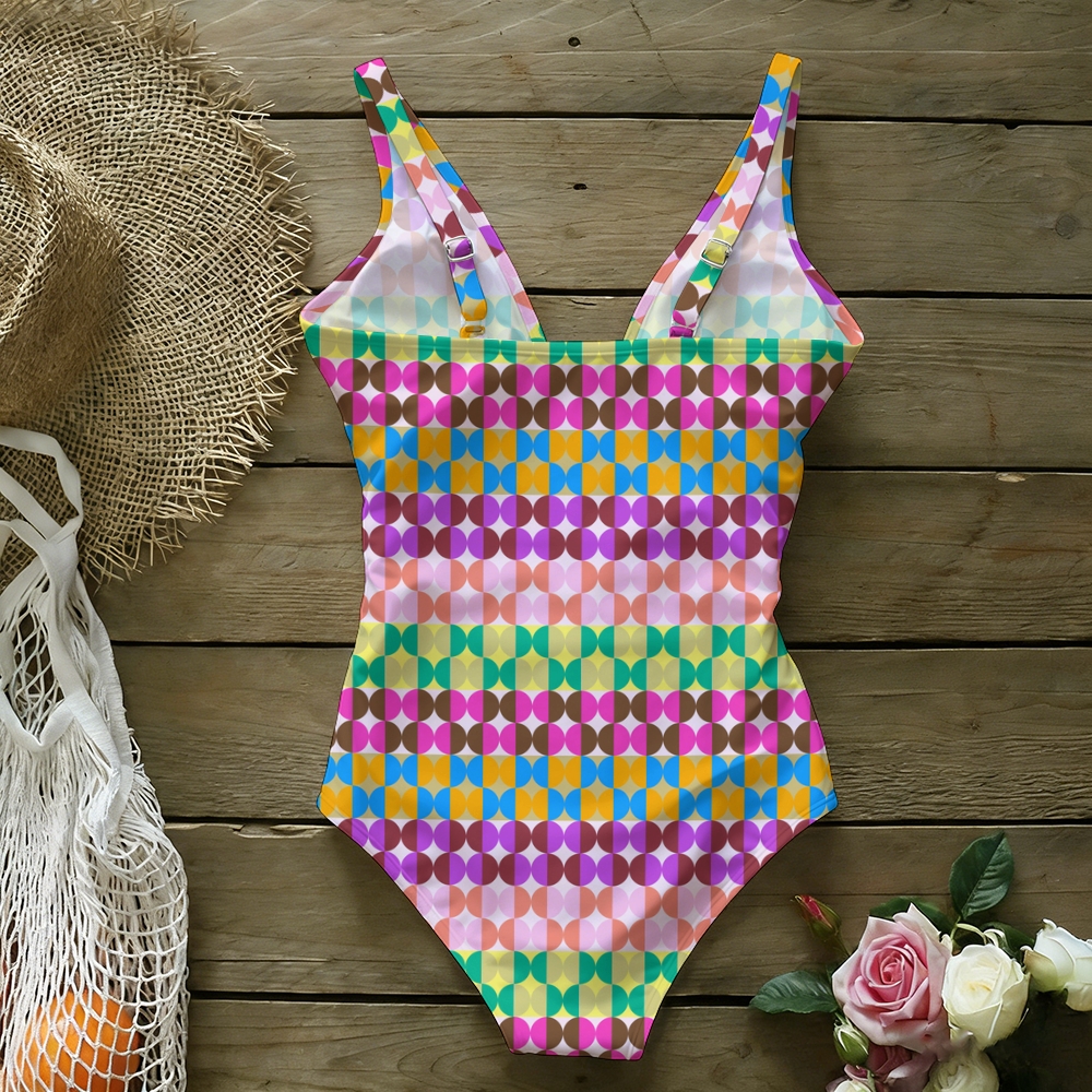 Women's Colorful Half Circle Stripe Print Bow Tie One-Piece Swimsuit
