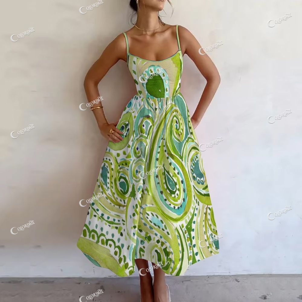 Women's Lime Paisley Printed Slip Dress