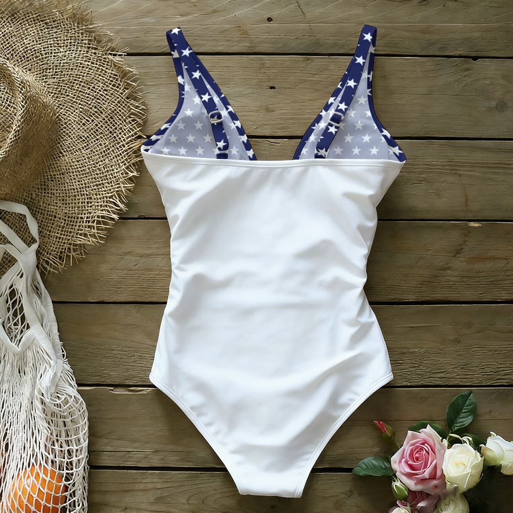 Women's USA 250th Anniversary Patriotic Print Bow Tie One-Piece Swimsuit