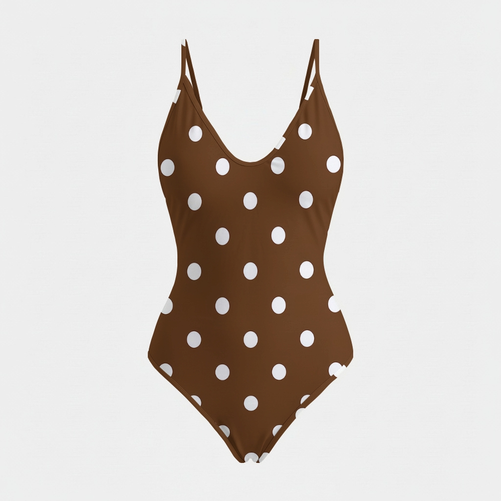 Brown White Polka Dot Deep V Tie Backless One Piece Swimsuit