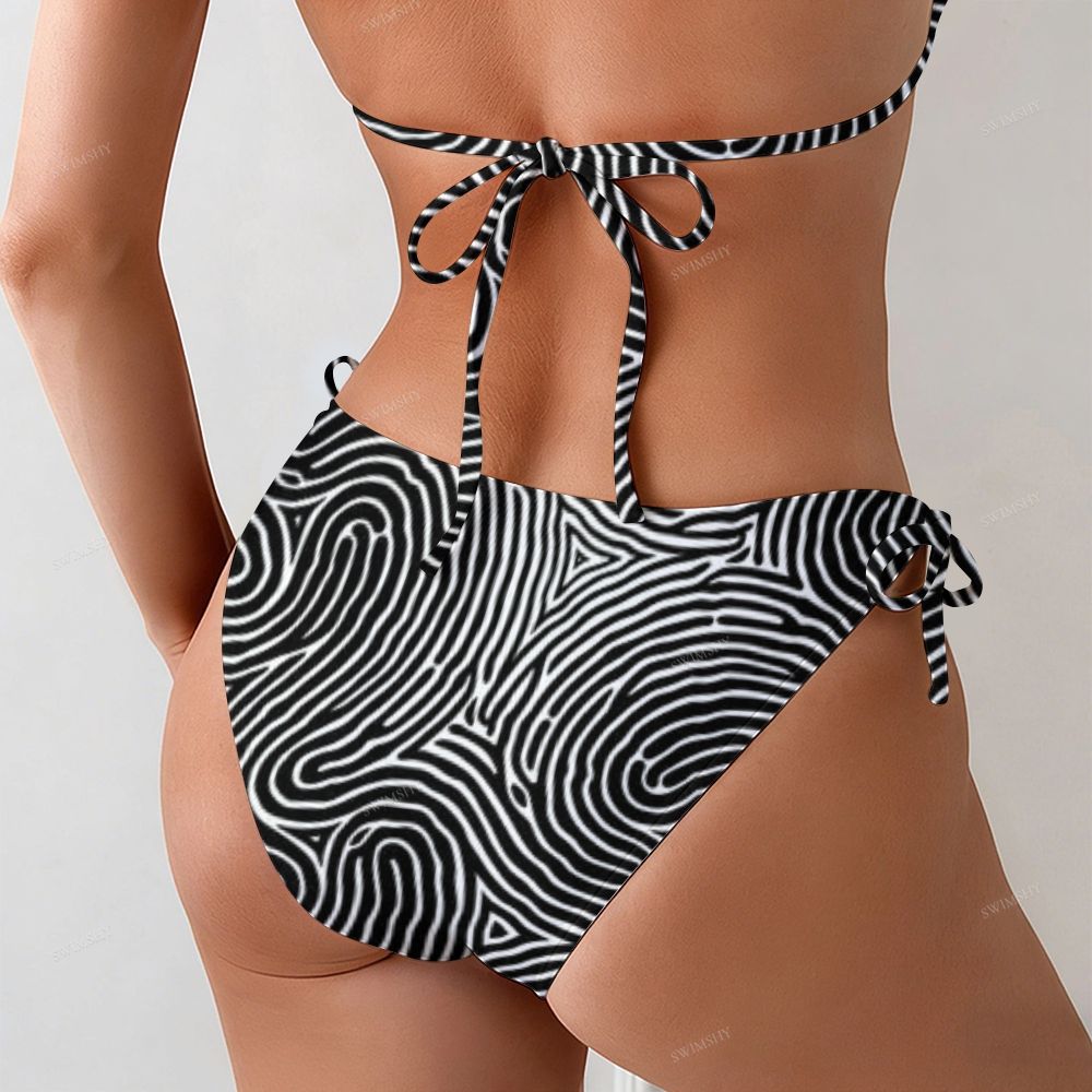 Black & White Swirl Print Halter Triangle Bikini