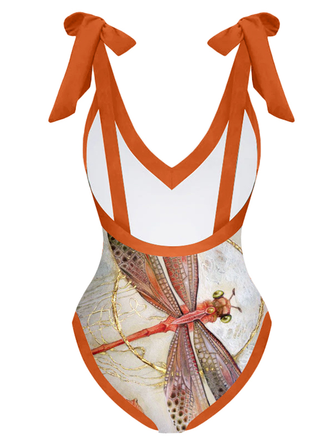 Fashion Print V-Neck One Piece Swimsuit Set
