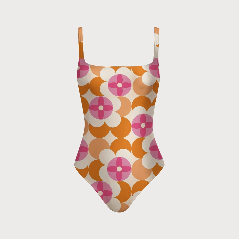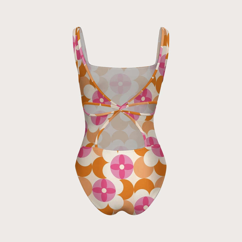 Geometric Floral Square Neck Cutout Criss Cross One Piece Swimsuit